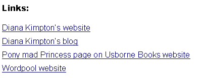 Diana worked as a teacher before eventually becoming a writer. She has written a number of children's books both fiction and non-fiction, including some of the humourous non-fiction series 'The Knowledge.' Her humour and love of horses also shows through in her Pony Mad Princess books, a series of horsy tales for the younger reader. She has recently also written a more serious pony story for a slightly older readership about a girl in foster care. In addition to writing books, she also works as a scriptwriter.
